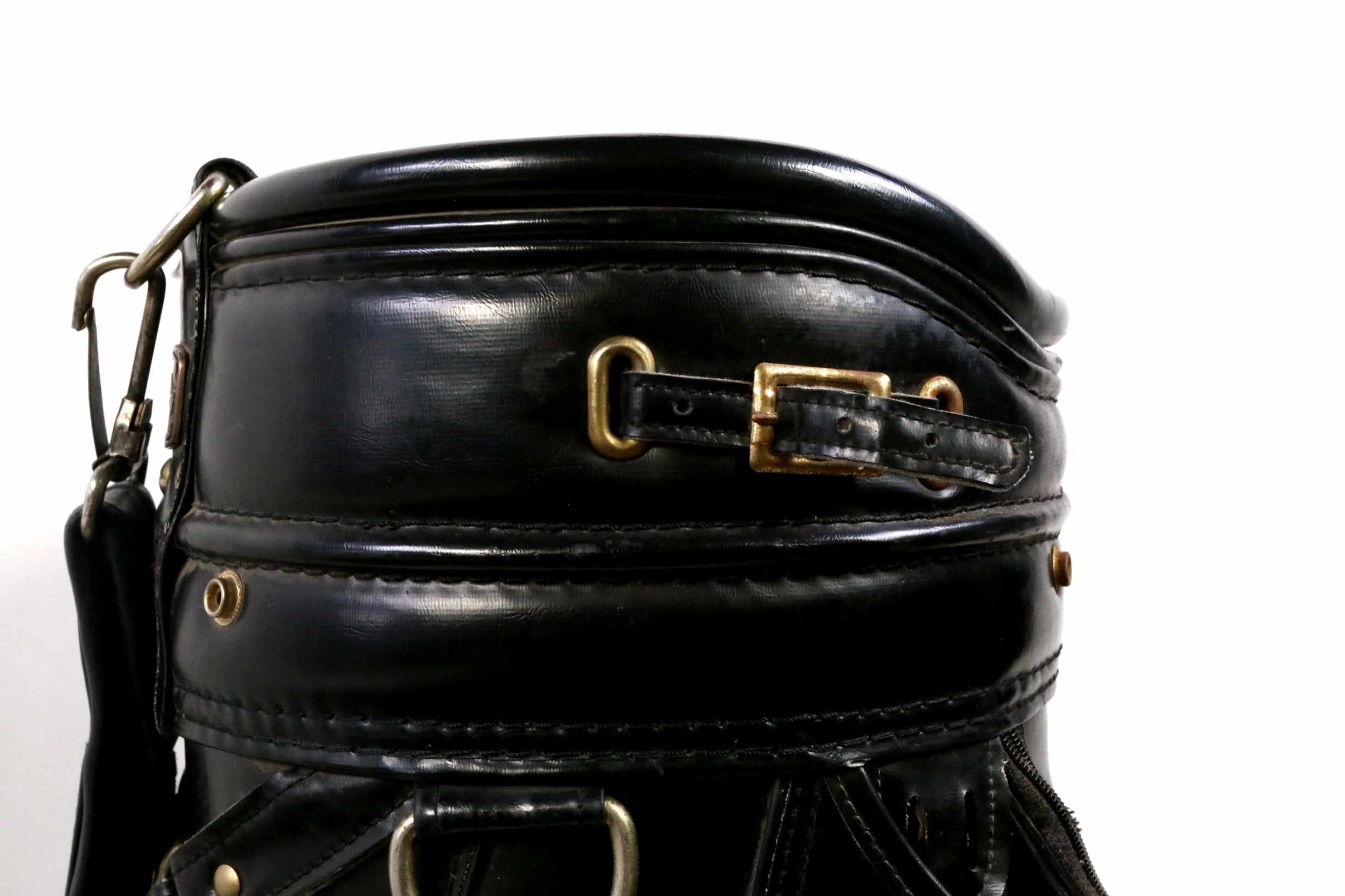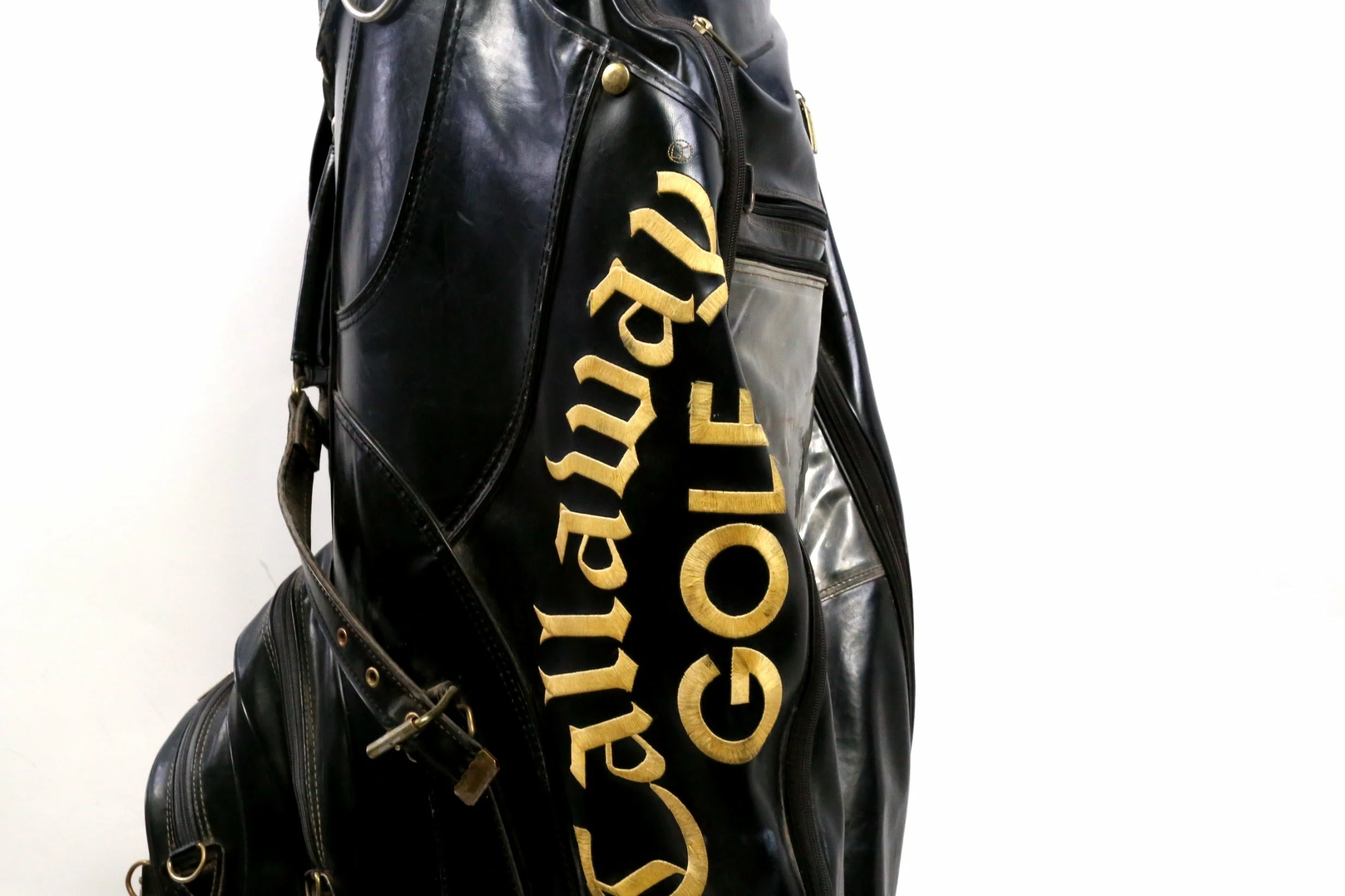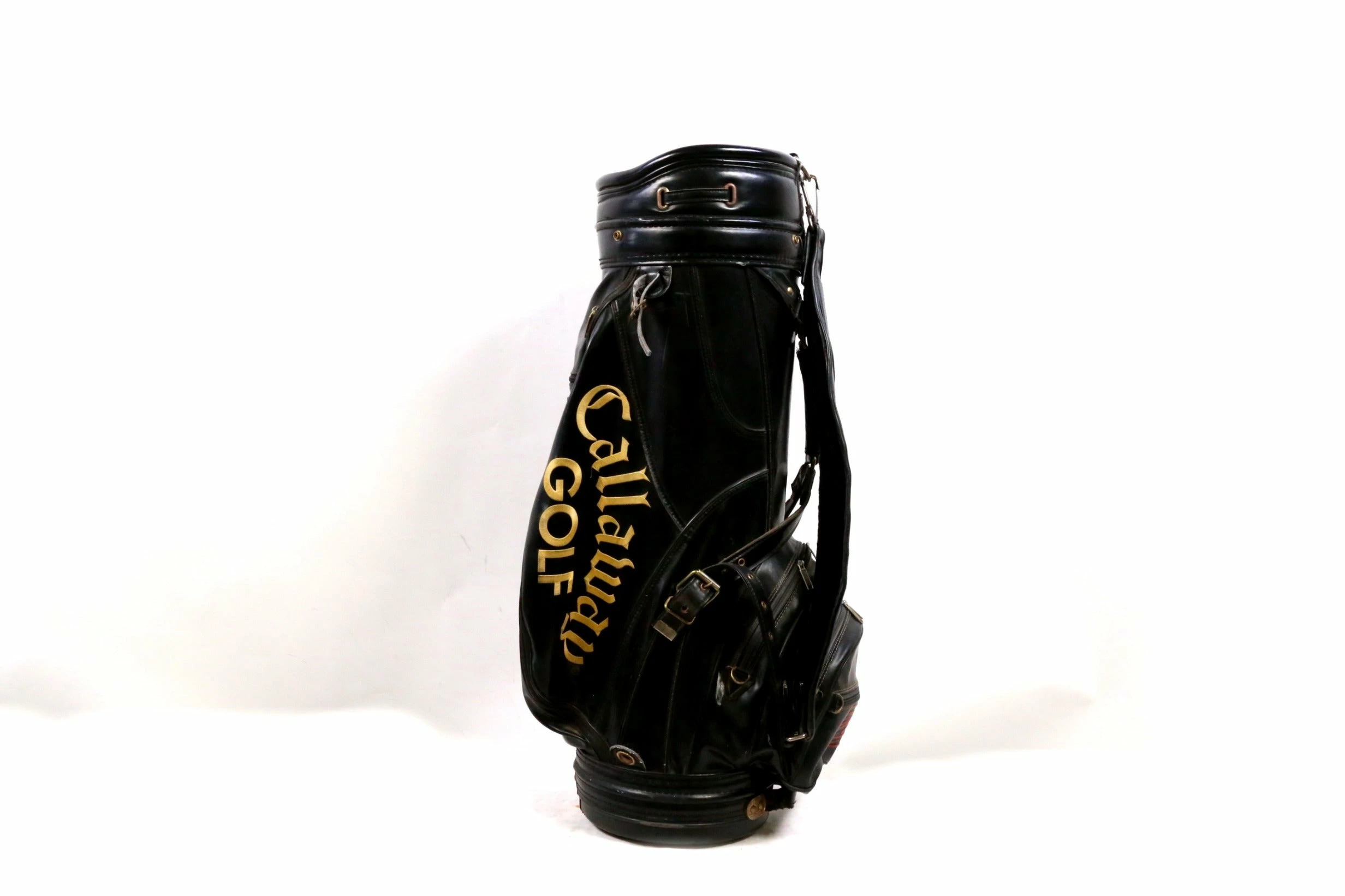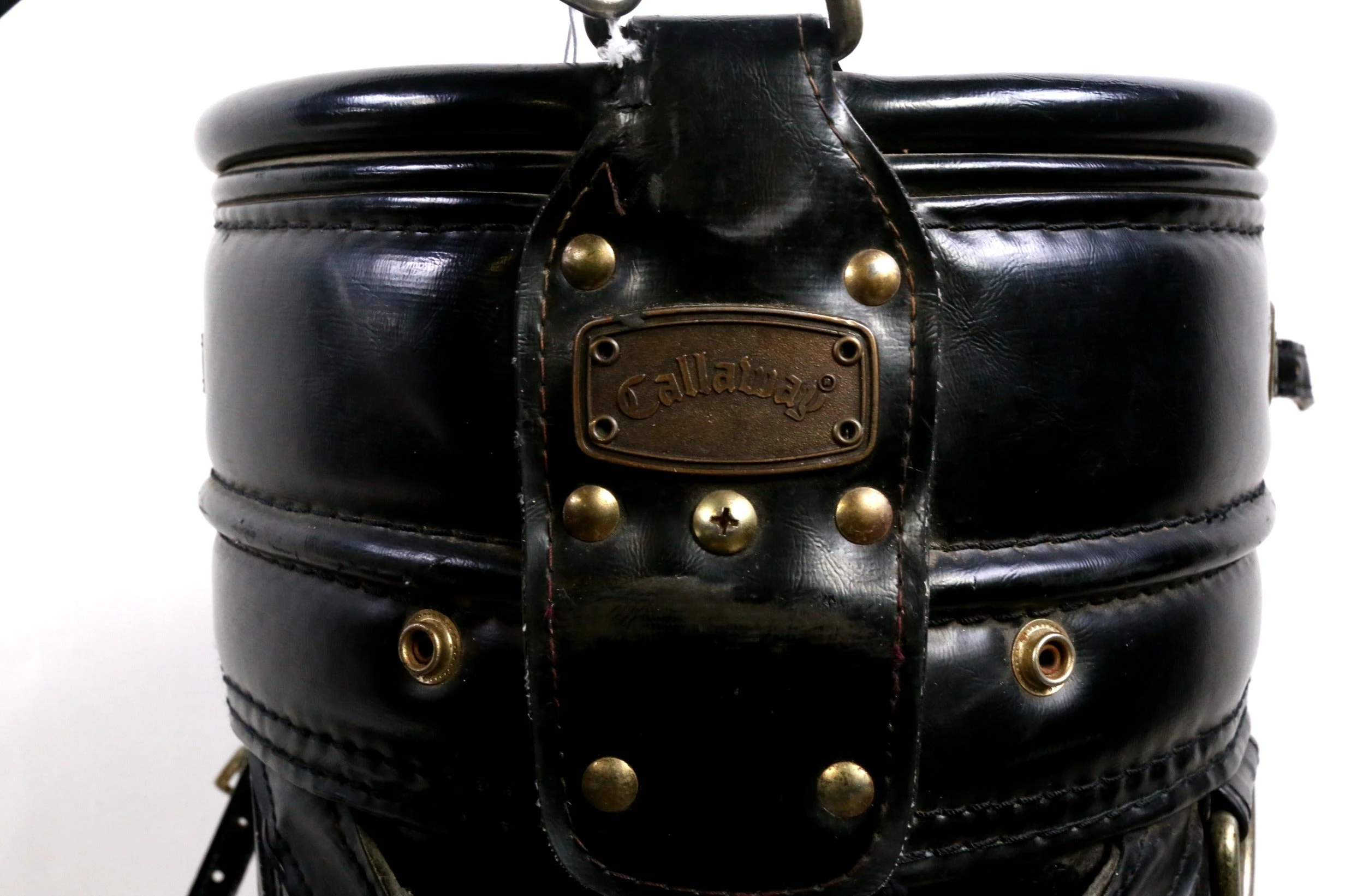 EXELLENT- This Callaway staff bag is in excellent condition with very minor wear from use. There is minimal dirt and staining on this bag from handling. There are also minimal signs of tearing among the dividers and near the pockets. This leather bag Comes with 6 dividers, 6 pockets and features zippers that all function well. Please see the pictures provided for more details.