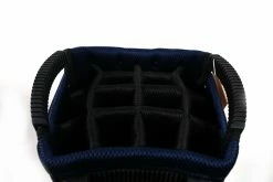 VERY GOOD- This Glove It cart bag is in very good condition with very minor wear from use. There is minimal dirt and staining on this bag from handling. There are also minimal signs of tearing among the canvas dividers and near the pockets. This bag Comes with 14 dividers, 9 pockets and features zippers that all function well. Please see the pictures provided for more details.