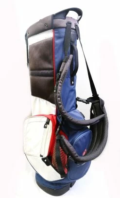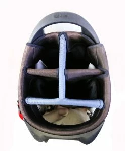 GOOD – This golf bag is in good condition. This bag has the “Stoneybrook Junior Golf” logo stitched on the center back pocket. There is average wear on the exterior of the bag from regular use. The bag is sturdy, and the zippers are fully functional and have some wear from regular use and storage.
