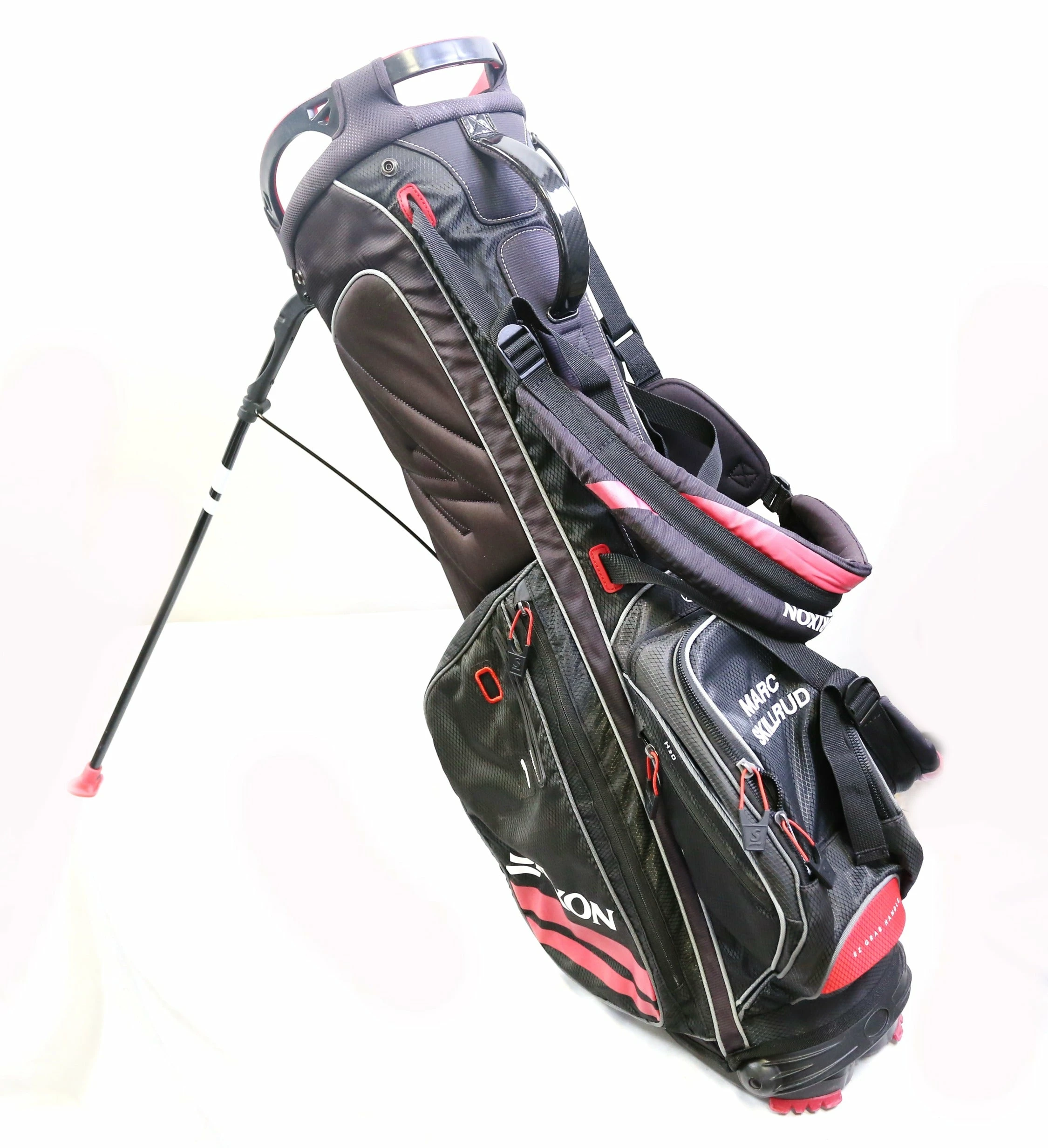 VERY GOOD – This golf bag is in very good condition. There is minor wear on the exterior of the bag from regular use. The bag is sturdy and the zippers are fully functional and have some wear from regular use and storage.
