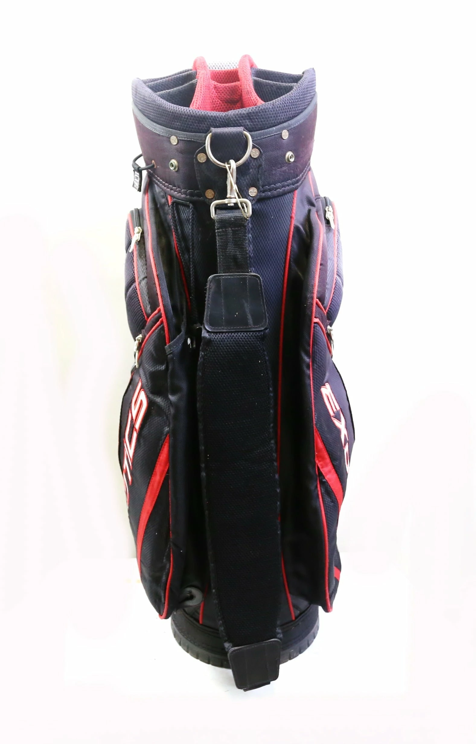 GOOD – This golf bag is in good condition. There is average wear on the exterior of the bag from regular use. The bag is sturdy and the zippers are fully functional and have some wear from regular use and storage.